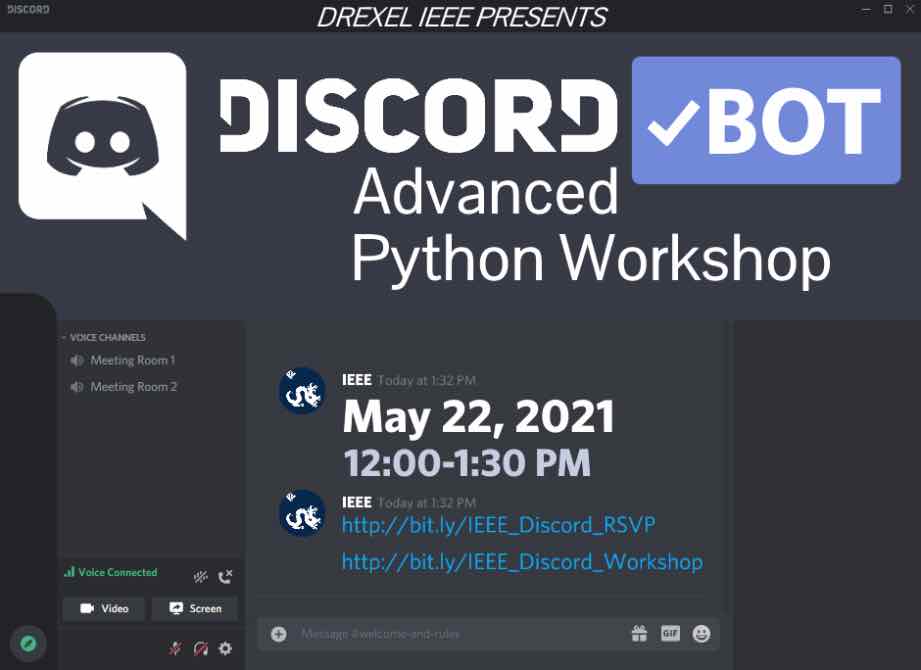 Ever wondered how Discord bots like Apollo, Groovy, and MEE6 work? Want to learn more about Python APIs? Then this workshop is for you. In this workshop we will review object oriented programming with Python by tackling the challenge of creating our own Discord bot.