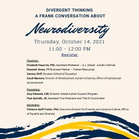 In this panel discussion, we will address the increasing familiarity with the term “neurodiversity” through a conversation grounded in the experiences of neurodivergent students, faculty, and professional staff members in the Drexel community. In addition to learning from the experiences of our panelists, we will also explore the definition and meaning of neurodiversity.