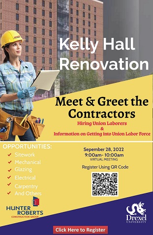 Please join us in our Meet the Contractor series where contractors involved in the renovation of Kelly Hall, explain their engagement process and areas they are looking to hire.
