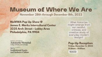 This question animates a new exhibition of objects belonging to students in the "History of Modern Design" class and the written meditations inspired by them. This exhibition will feature work by colleagues at Collarts (the Australian College of Arts, Melbourne) and by students in Professor Jen Blazina's screenprint course. It is supported by the Drexel Founding Collection and co-curated with its director, Lynn C. Waddell.