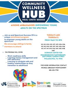Join us and Spectrum Success 911 in a unique enrichment program to empower young adults on the spectrum!