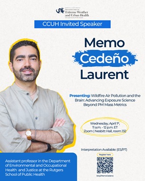 The Drexel Research Center on Extreme Weather and Urban Health (CCUH) is pleased to welcome Dr. José Guillermo Cedeño Laurent, who will present "Wildfire Air Pollution and the Brain: Advancing Exposure Science Beyond PM Mass Metrics."
