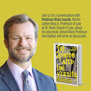 Join us for a conversation with Professor Brian Soucek, Martin Luther King Jr. Professor of Law at UC Davis School of Law, about his new book, The Opinionated University: Academic Freedom, Diversity, and the Myth of Neutrality in American Higher Education. Professor Anil Kalhan, Drexel Kline School of Law will serve as discussant.