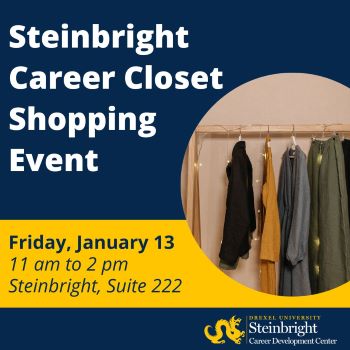 Looking for professional clothing for interviews or work? Please join us at at the Steinbright Career Closet's Shopping Event on January 13, 2023 for a free professional outfit. Select from a choice of suits, shirts, slacks, blazers, blouses, skirts, dresses, shoes, and other accessories.