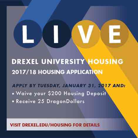 For more information, visit drexel.edu/housing, email us at housing@drexel.edu, or call 215.895.6155 Monday through Friday 8:00 a.m. to 5:00 p.m. We are glad to be a part of your experience at Drexel!
