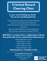 The Expungement Clinic returns with help starting the process of erasing non-conviction information from your record and information about the Pardon Process.
