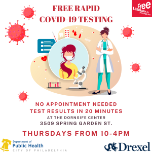 Dornsife hosts free rapid testing on Thursdays from 10am-4pm. Receive your test results within 20 minutes!