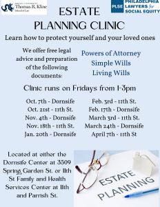 Locations alternate between the Dornsife Center at 3509 Spring Garden St. and the 11th Street Family Health Services Center at 11th and Parrish St.