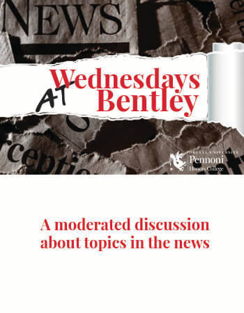 Wednesdays at Bentley brings together community members as well as students, staff, and faculty, for a monthly discussion of topics in the news. The moderated format is free and open to the public. Although at times the views expressed are at odds, the discussion remained civil.