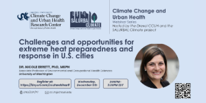 Please join the Drexel Climate Change and Urban Health Research Center (CCUH) and the Climate Change and Urban Health in Latin America (SALURBAL Climate) project for a webinar featuring Dr. Nicole Errett, Associate Professor of Environmental and Occupational Health Sciences at the University of Washington.