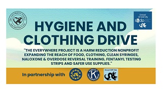 The Dornsife Undergraduate Student Government Organization, Circle K International, and CHP Club recently partnered with Drexel Students for Sensible Drug Policy and other community organizations to host a Clothing and Hygiene Supply Drive for "The Everywhere Project," a harm reduction nonprofit expanding the reach of food, clothing, clean syringes, naloxone & overdose reversal training, fentanyl testing strips, and safer use supplies in Philly.