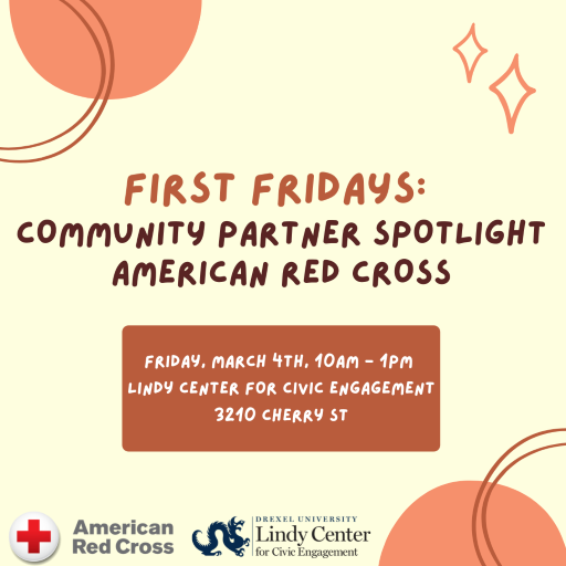 The Lindy Center for Civic Engagement invites you to our monthly First Friday! Stop by any time between 10am – 1pm for food, zine making, and a chance to talk to our community partner, the American Red Cross