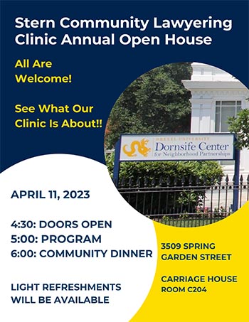 All are welcome to visit the Stern Community Lawyering Clinic Annual Open House! Come see what our clinic is about!