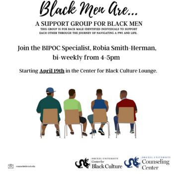 This group is for Black male identified individuals to support each other through the journey of navigating a PWI and life. For more information, please check out the Center for Black Culture website under BIPOC Support! To sign up, email counsel@drexel.edu.