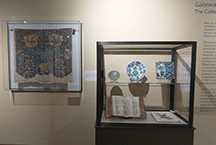 The inaugural exhibition in the new gallery, curated by Cara Fry and Derek Gillman, is designed to provide a window into Drexel’s extraordinary collections which range from rare books to couture; from natural science to fine and applied arts. Every piece in the show is a treasure – including a Rittenhouse Orrery clock from 1873, a 1991 James Galanos evening gown, a 450 million year old slab of fossilized trilobites and a 16th century Paracelsus incunabulum. Also highlighted is an 1876 William Morris textile which serves as a fascinating case study for the way in which the objects in the Drexel collections invite interdisciplinary teaching and research and thereby provide historical context and contemporary relevance.